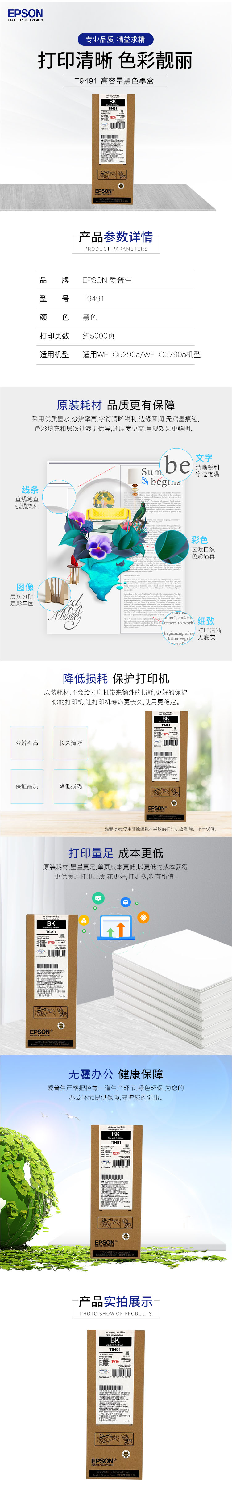 爱普生T9491黑色墨盒(WF-C5790a) 自营