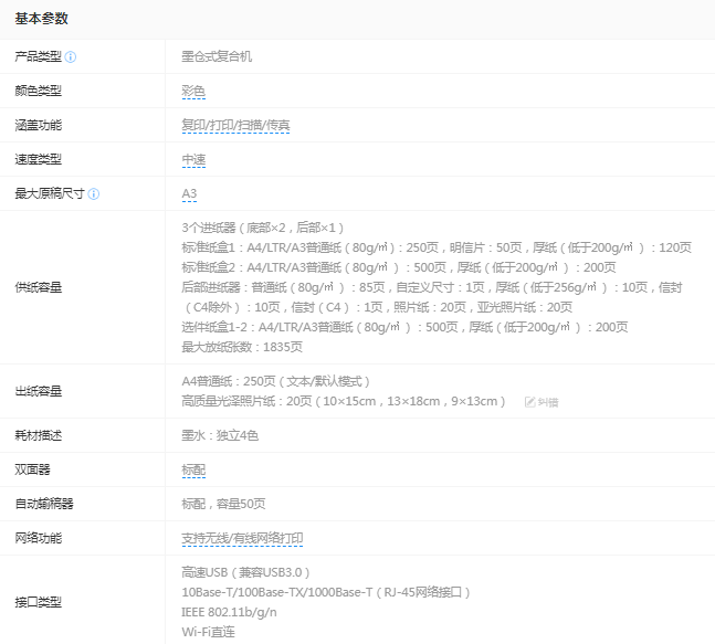 爱普生 WF-C869Ra A3 彩色商用墨仓式复合机 自营