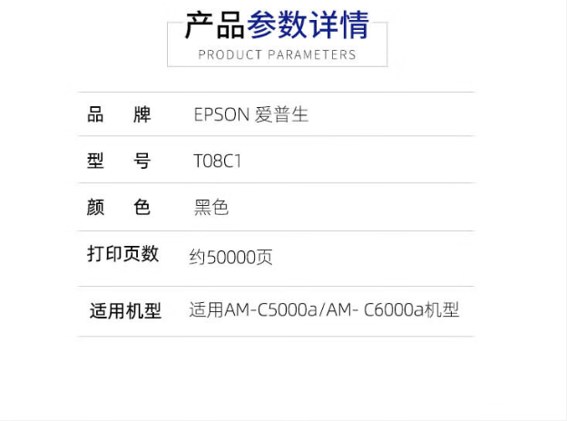 爱普生(EPSON)T08C1 黑色墨盒(适用AM-C5000a/AM-C6000a复合机)约50000页 自营