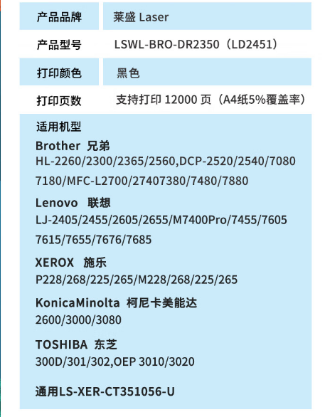 莱盛DR2350硒鼓 适用于兄弟HL-2260/2260D/2560DN 联想 LJ-2405D 自营