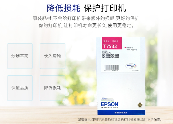 爱普生(EPSON) T7533 红色墨盒(适用于WF-6093/6593/8093/8593) 自营